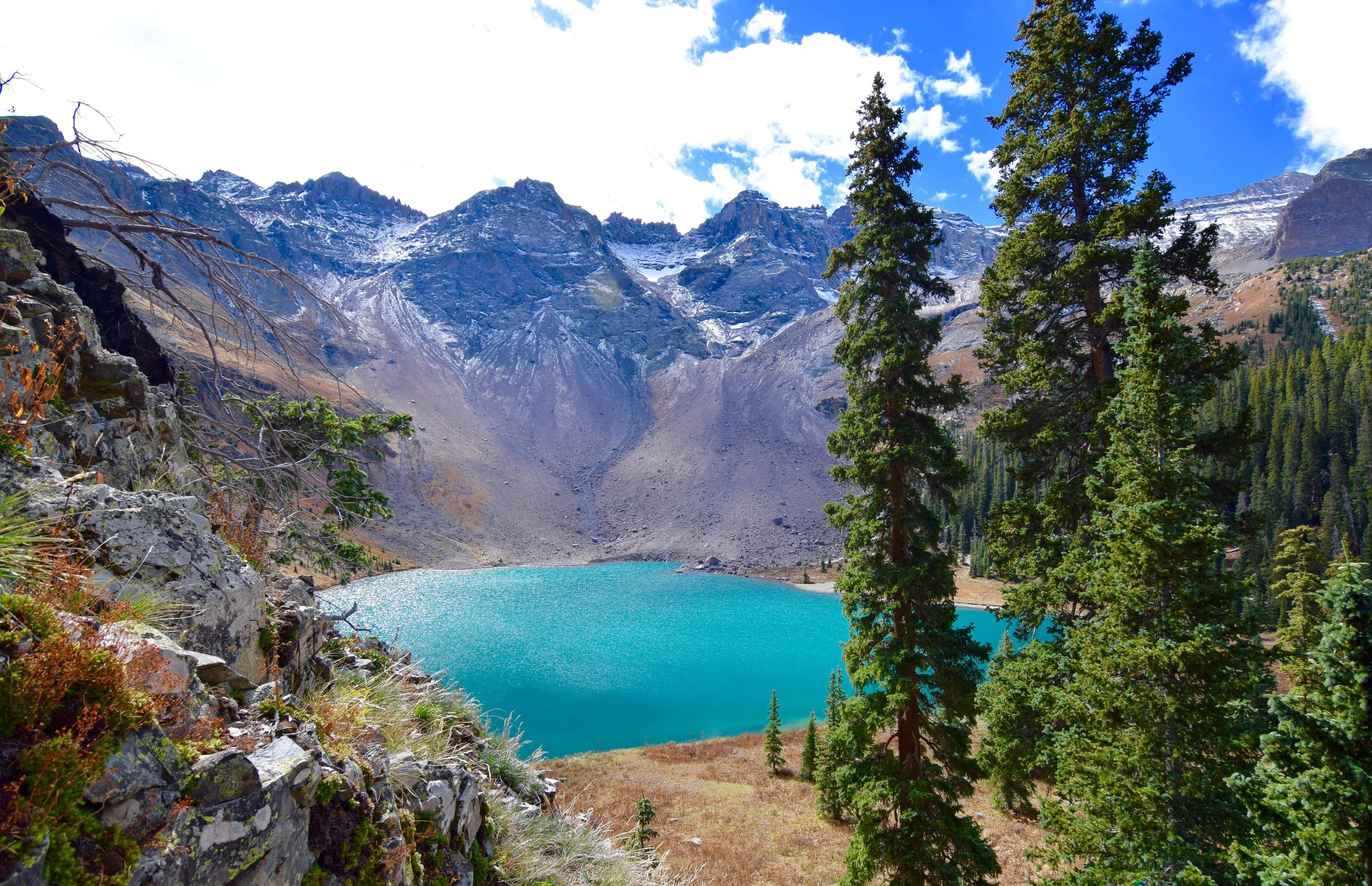 The suspense of reaching lower Blue Lake was boiling over. Rounding the corner, there she was in all her glory. The sun bounced sparkles off the jolting blue water and the mountains cradled the lake like it's beautiful baby.