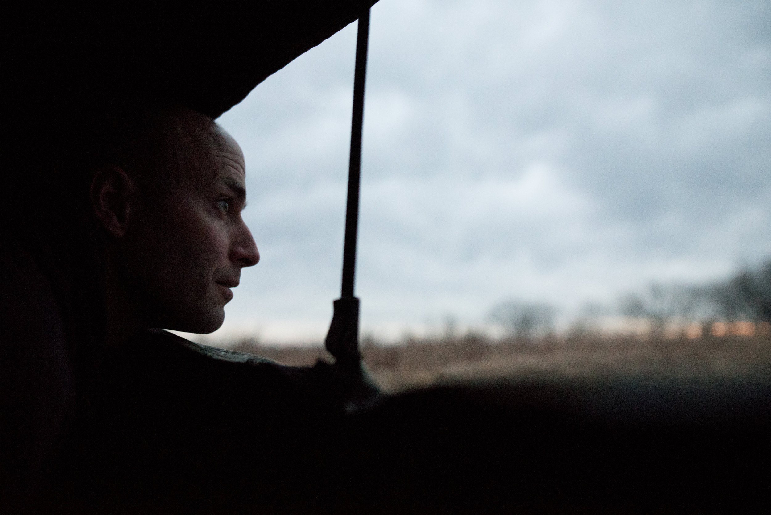We ended up not seeing a single bird that day. That evening Andy, my father and I walked out of the woods turkey-less, but not hopeless. We set out at sunrise the next day and set up our morning blind outside of a cottonwood grove where we thought the birds would be roosting for the night. As the sun began to brighten the sky, low and behold a single bird started grazing around 80 yards from our blind.